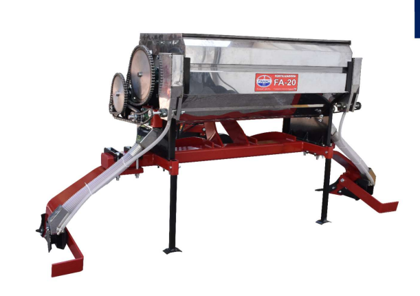 FERTILIZADORA AGAVERA CON DEPOSITO DE FERTILIZANTE CON CAPACIDAD DE 500KG EN ACERO INOXIDABLE, EQUIPADA CON MOTOR HIDRÁULICO Y VÁLVULA REGULADORA DE FLUJO.