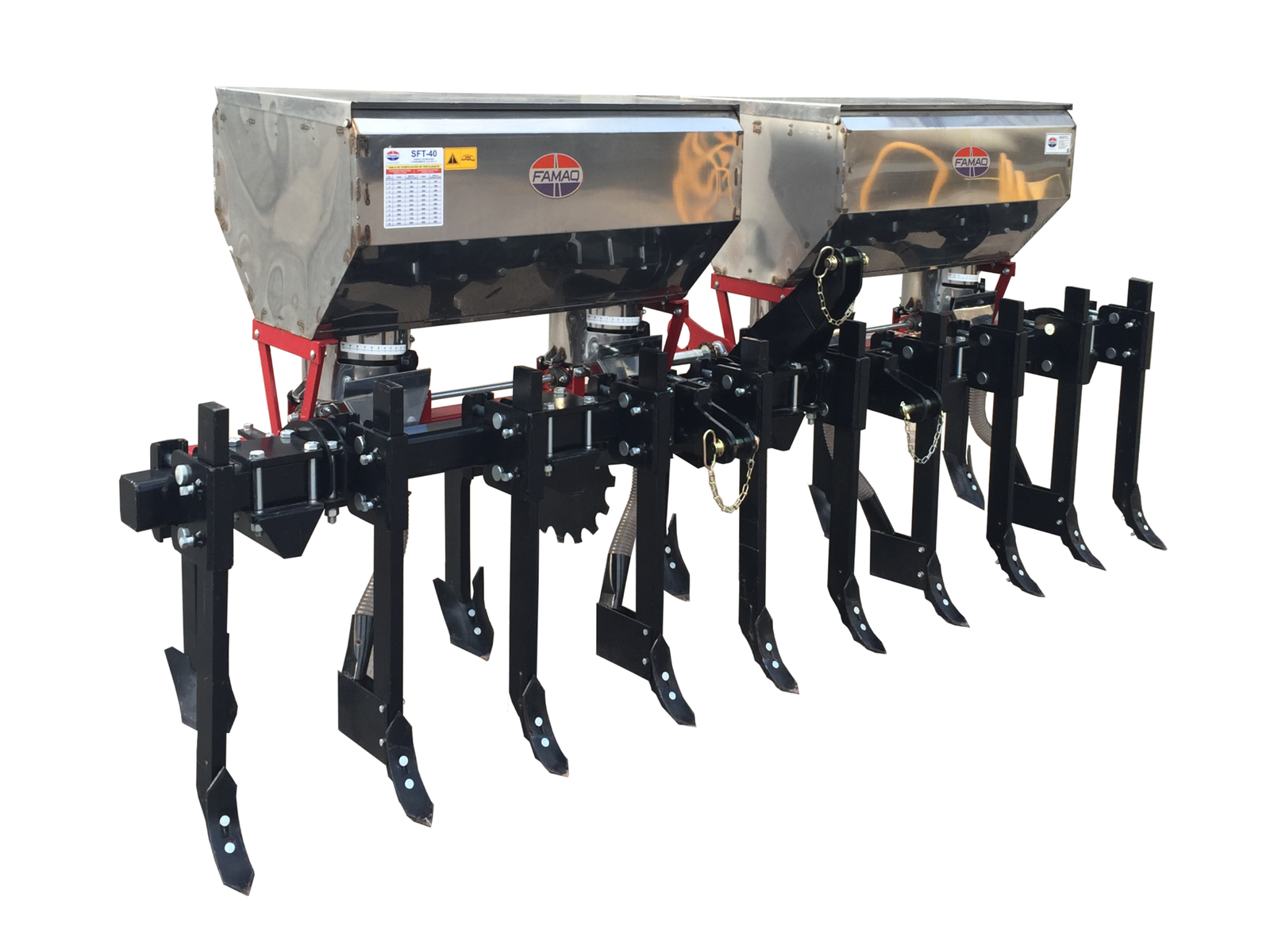 Fertilizadora con autopropulsión central con dos cajones de doble salida cada uno, con capacidad de 200 lts. En acero inoxidable y opción a motor hidráulico.